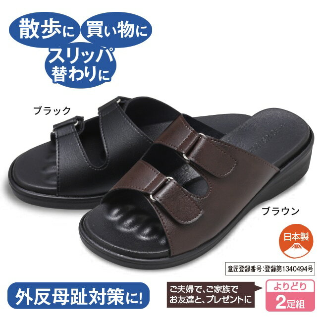 フットスペースサンダル よりどり2足組 - ブラック ブラウン エンジ 足つぼ ツボ 刺激 サンダル 外反母趾 予防 クッション 健康サンダル 日本製 S M L LL