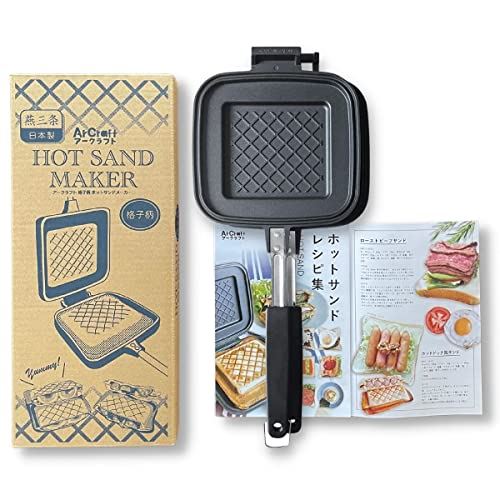 【特別版:レシピ集付属】【燕三条 日本製】 格子柄 ホットサンドメーカー 耳圧着タイプ 焼き目 チェック 耳まで焼ける 直火 着脱簡単 片面フラット フライパン 丸洗い可 家でも アウトドア キャンプ 安心の
