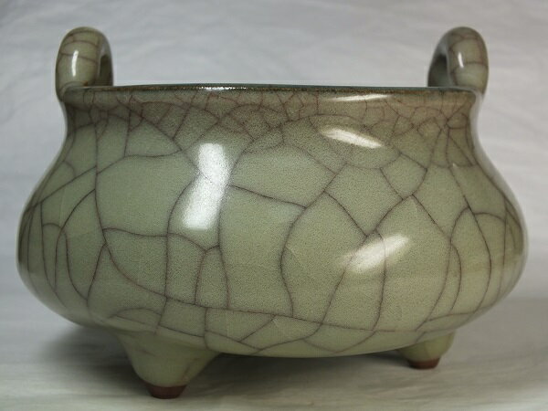 サイズ(約):横128×高86mm 口直径(内):約90mm 重さ:515g ●周囲の素朴なひび割れが特長の哥窯(かよう)の広口瓶です。