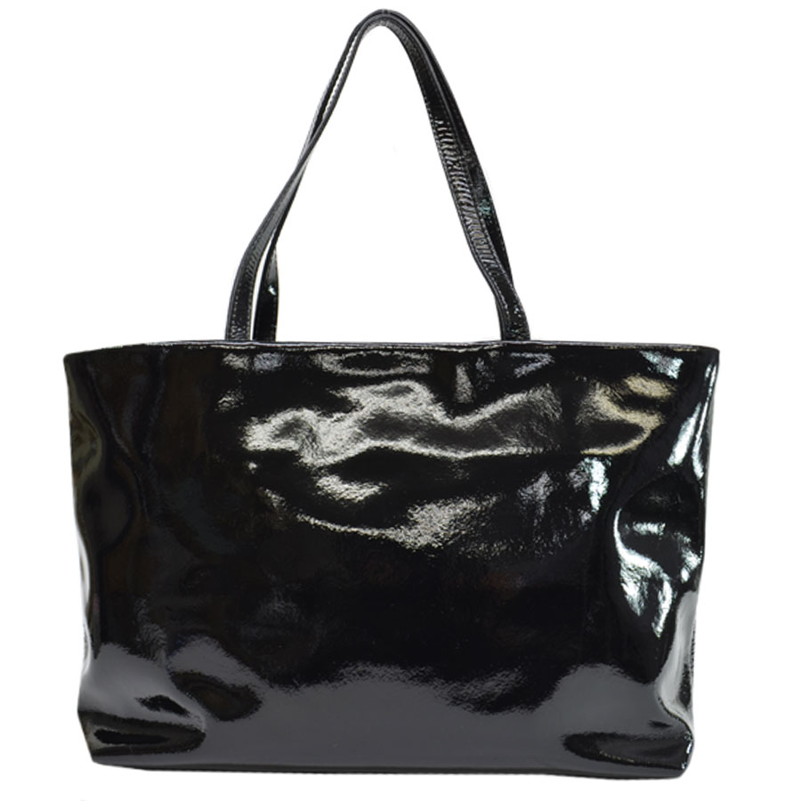 光沢のあるブラックレザーがオシャレ1開閉口が大きく開くトートタイプは使いやすくお勧めです。