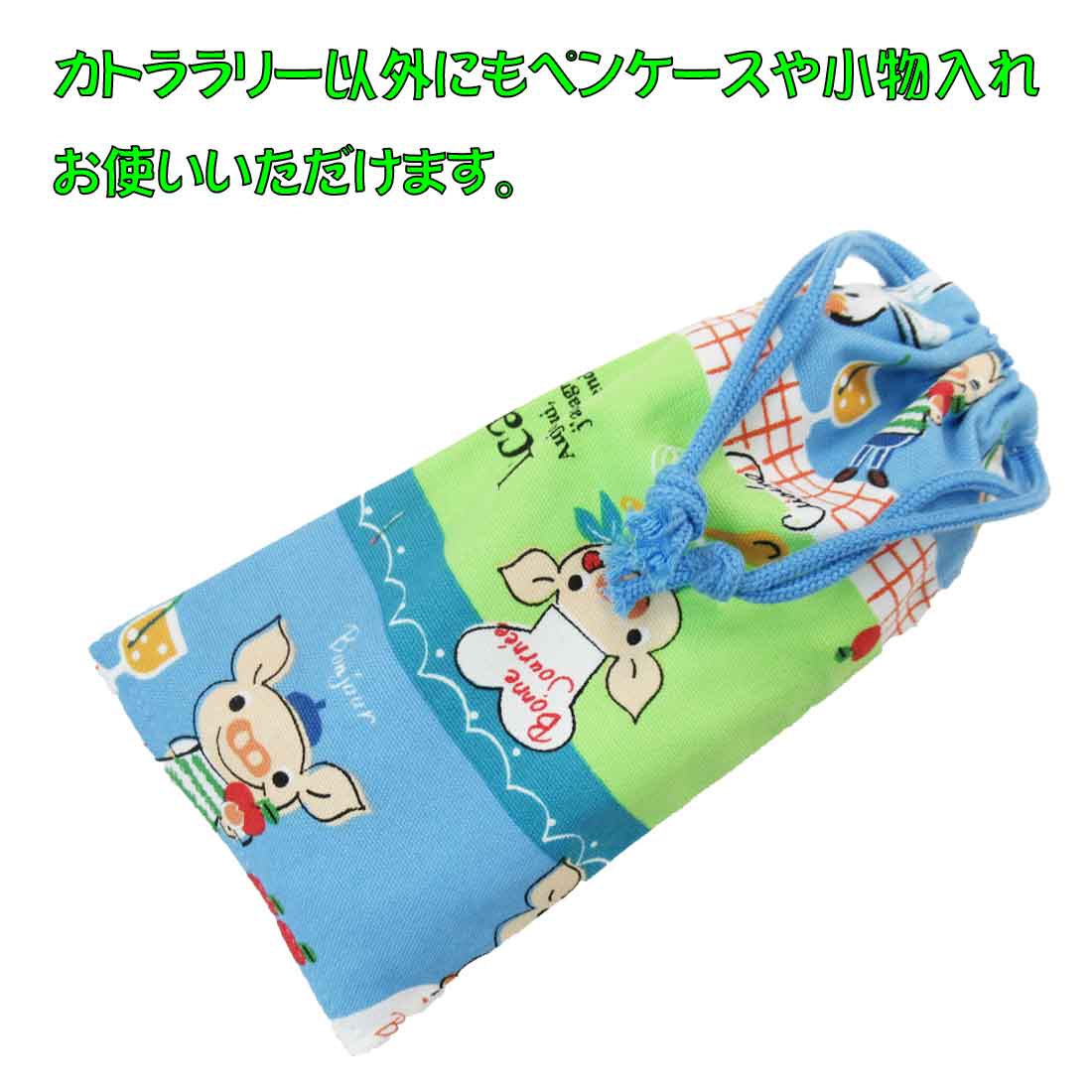 カトラリーケース(ブルー×ブタのルーカス柄)ハンドメイド スプーン・フォーク入れ カトラリー入れ 巾着袋 小 入園 入学 ランチ 幼稚園 保育園 小学校 ピクニック 遠足 給食の詳細 ●カラー:ブルー×ブタのルーカス柄両絞り ●素材:綿100% ●サイズ:約20cm×10cm カトラリーケース(ブルー×ブタのルーカス柄両絞り)ハンドメイド スプーン・フォーク入れ カトラリー入れ 巾着袋 小 入園 入学 ランチ 幼稚園 保育園 小学校 ピクニック 遠足 給食の説明 綿素材のしっかりした生地ですので触り心地も優しい感じです。