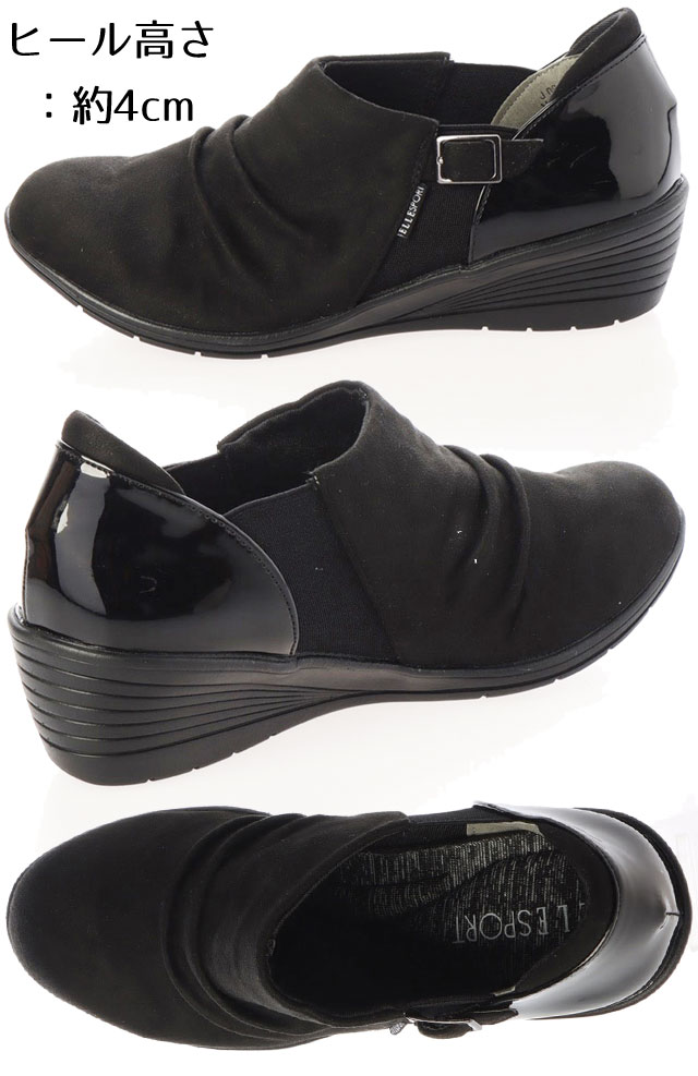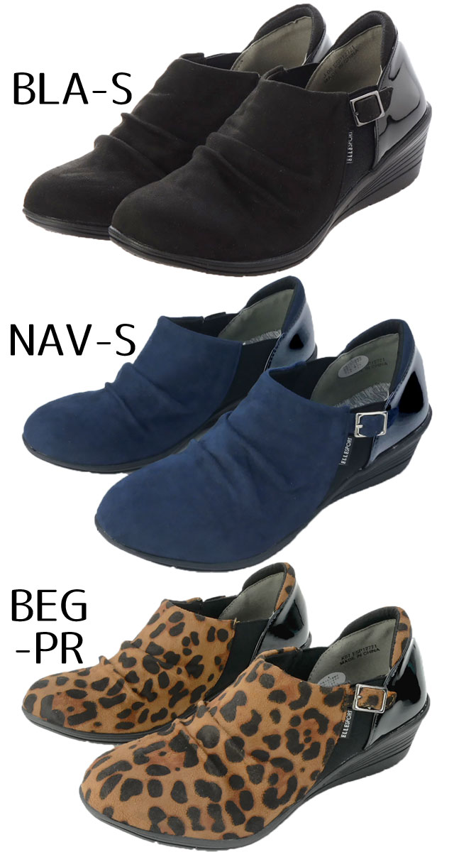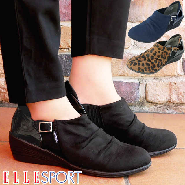 【あす楽】エルスポーツ ELLE SPORT レディース カジュアルシューズ 軽量ウェッジアンクルシューズ ウエッジソール 靴 ESP12721 ブラック 黒 ネイビー ベージュ ヒョウ柄 【送料無料】 evid