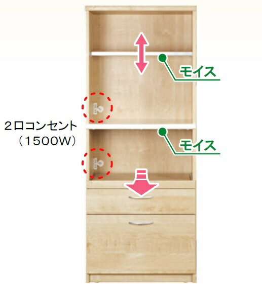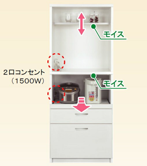 国産品 レンジボード プティ2 70R2色対応(ホワイト/ナチュラル)モイス・2口コンセント付オーバートラベルレール採用納期:約3週間送料無料(玄関前配送)北海道、沖縄、離島は別途お見積り